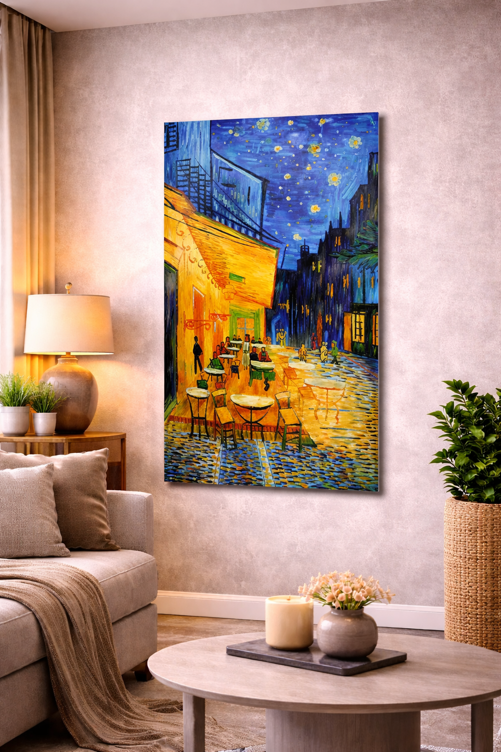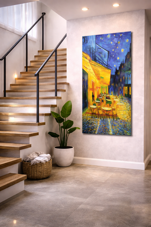 Bring art, elegance and warm night vibes into your home with this stunning Café Night Street Wall Poster.