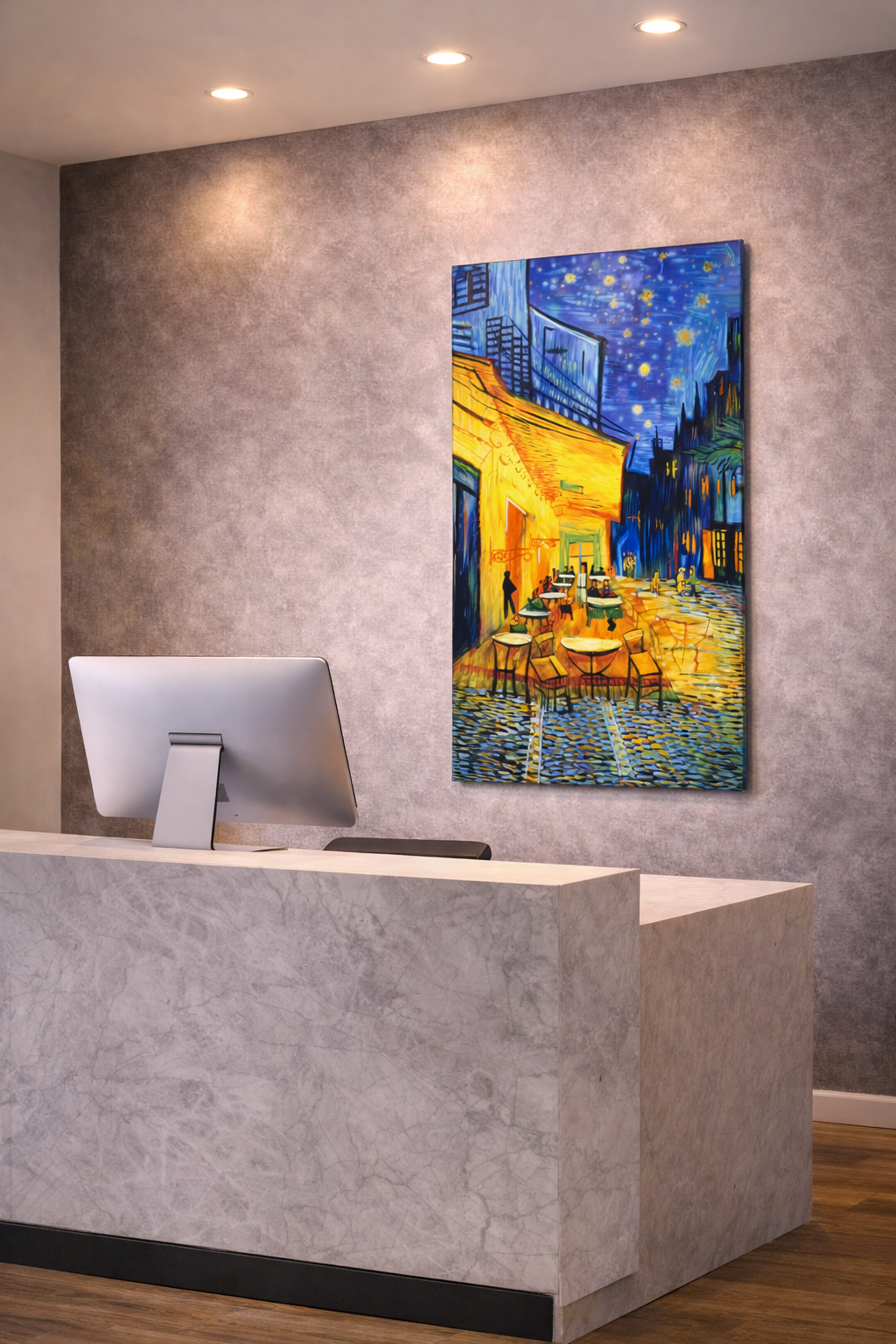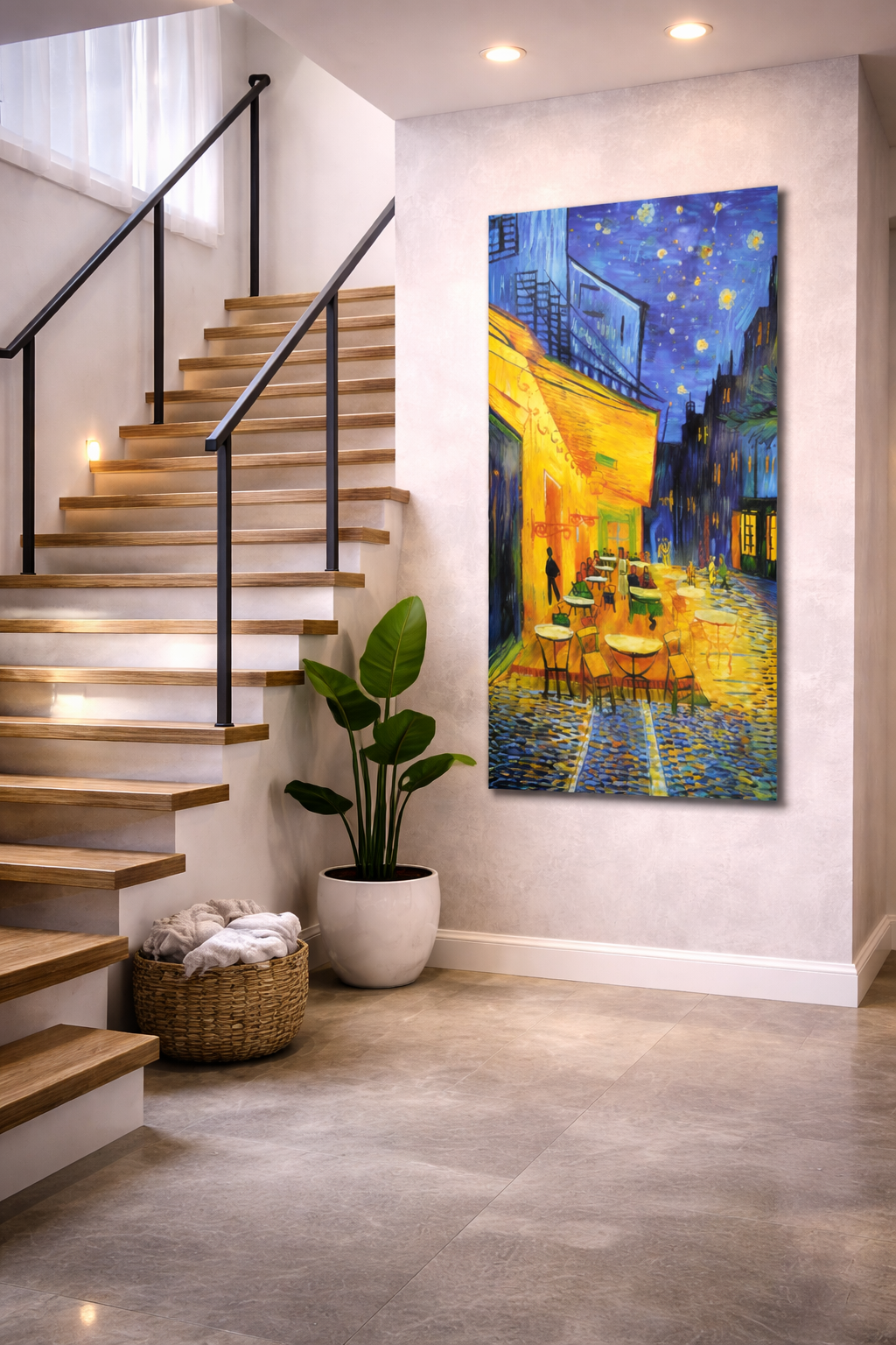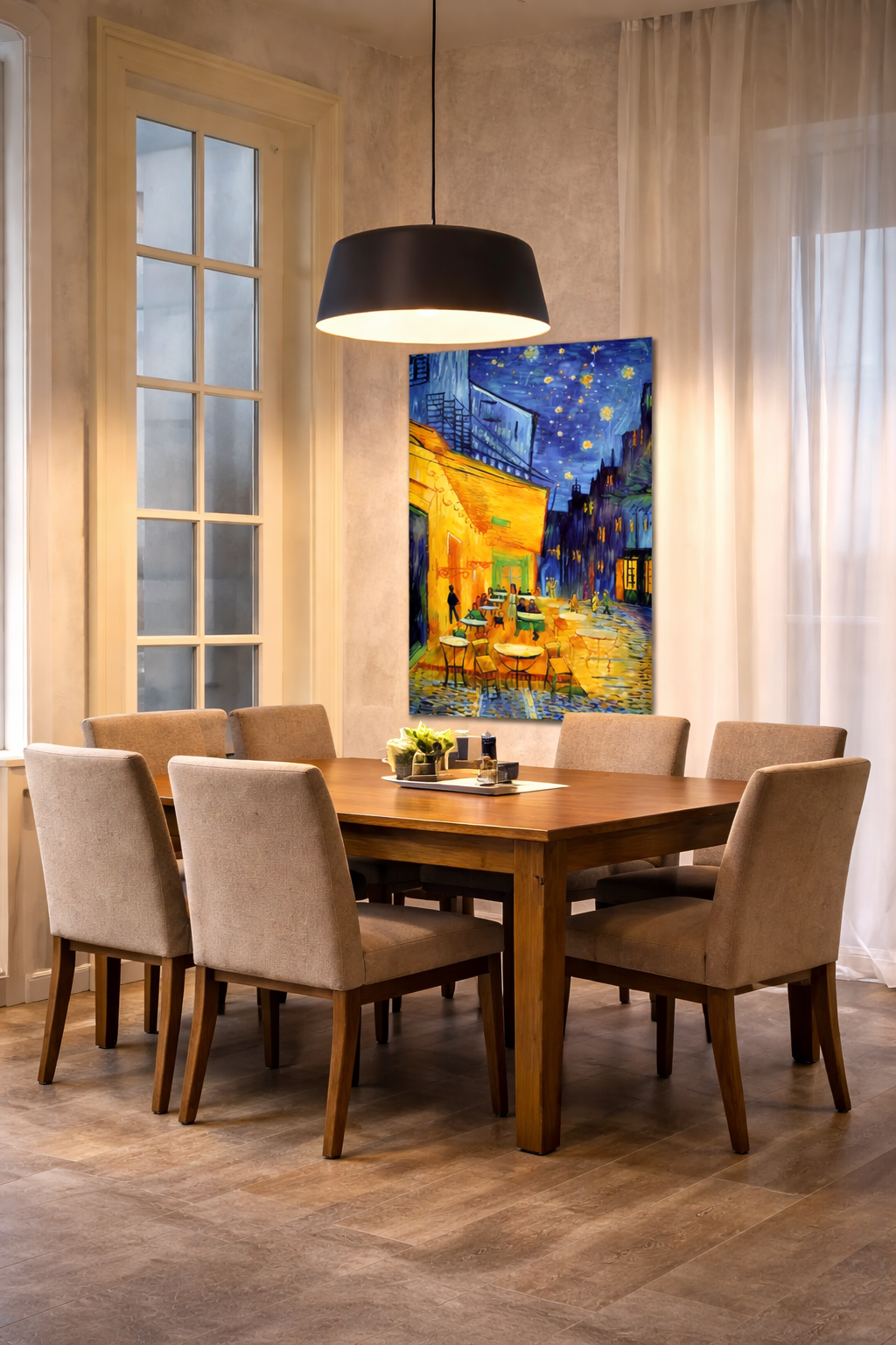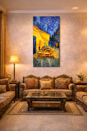 Inspired by classic European street art, this vibrant design features glowing lights, cozy café ambiance, and a deep blue night sky — creating a luxurious and artistic atmosphere instantly.