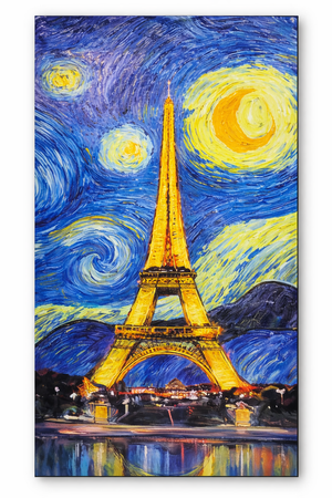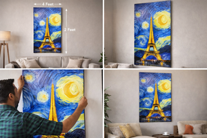 This Eiffel Tower Starry Night Wall Poster brings the beauty of Paris and artistic night vibes straight into your home. Designed in a bold starry night style, this poster adds elegance, color, and a modern look to any space.